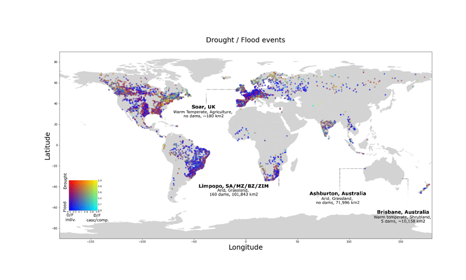 In 2010-12 and 2020 long-term drought conditions have been followed by extensive riverine flooding and flash floods across large parts of the UK, with impacts on urban and energy infrastructure and severe damage on properties and business to the amount of 600 million pounds (Chan et al., 2021; Environment Agency, 2013; Marsh et al., 2013; The Guardian, 2013; The week UK, 2022). Similar events have occurred in Afghanistan, Syria, the Horn of Africa, Peru, California and Italy. These events have developed from arid to wet basins, impacting both vulnerable and non-vulnerable societies and ecosystems. However, it is still unclear where and when these events most often occur? What are the hydrological mechanisms underlying the abrupt transition from drought to flood? And why in some areas do the benefits of heavy rain after drought outpace the impacts of floods, while in other areas the impacts of drought and flood accumulate and cascade?